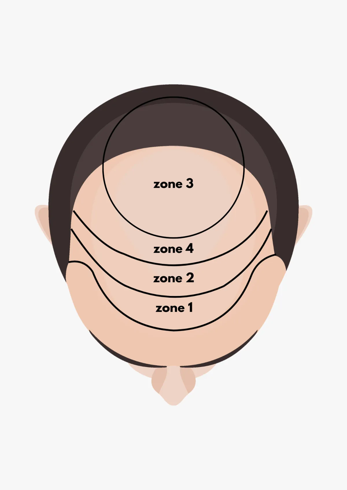 Het gebied direct achter de haarlijn. Deze zone wordt vaak gecombineerd met zone 1 voor een vloeiend resultaat.
